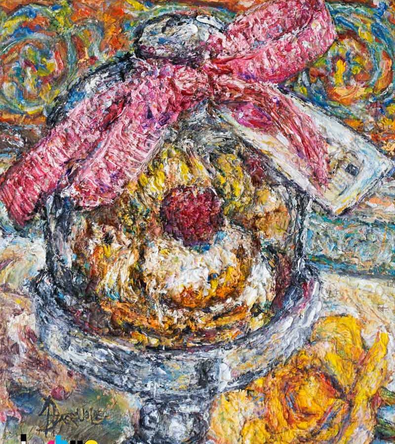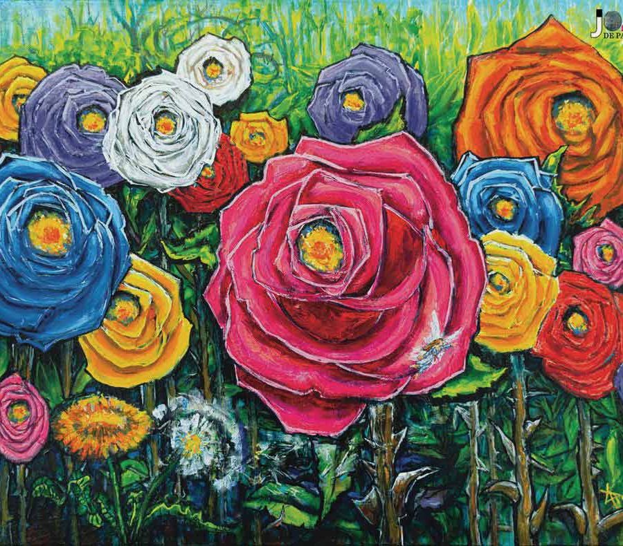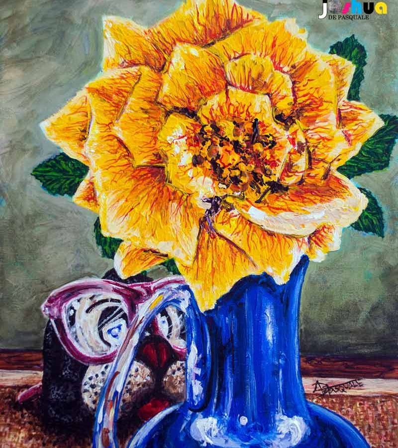 Granny Flowers - acrylic on canvas by Josh De Pasquale
