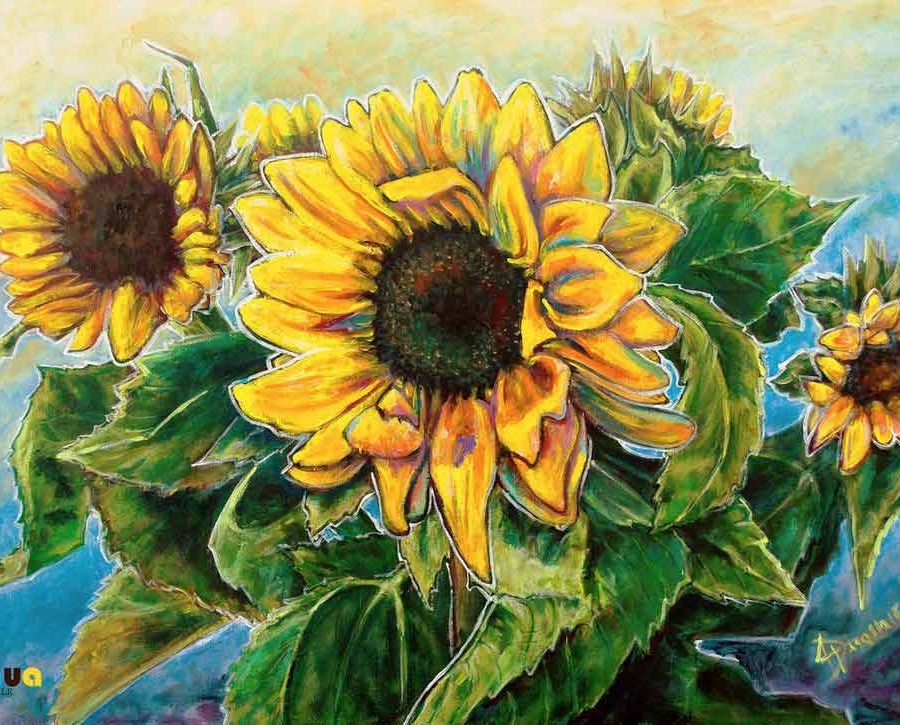 Jen's Sunflowers - acrylic painting on canvas board of sunflowers, still life by Josh De Pasquale
