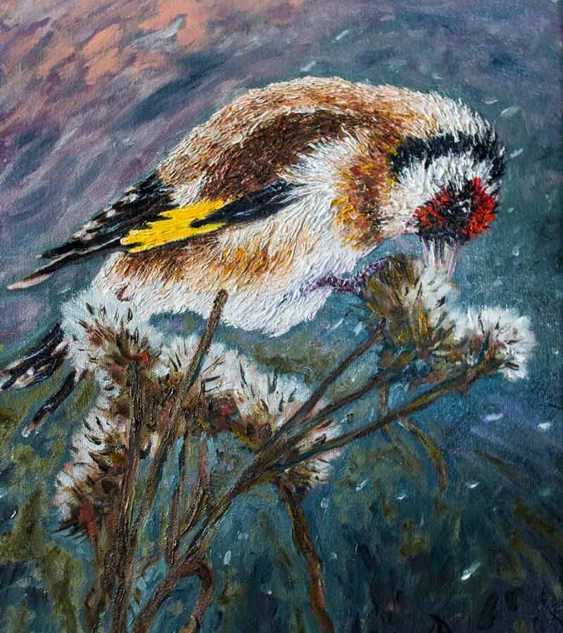 Red Faced Bird, by Josh De Pasquale. Oil on canvas, painting in flemish technique.
