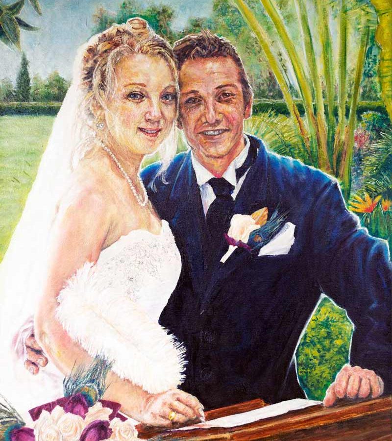Commission artwork - Oil on canvas of a wedding photo, an anniversary gift